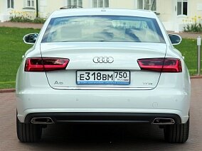 Аренда автомобилей Audi в Москве очень популярна. Это не удивляет. Внешний вид A6 в черном цвете достаточно привлекательный, но в то же время не лишен фирменных решений, по которым автомобиль без особого труда идентифицируется в общем потоке. Сдержанная агрессия выражается в интересной форме оптики головного освещения и клиновидном профиле, а диоды в блоке фонарей придают респектабельности. Пожалуй, это тот самый компромисс, которым славится данная немецкая марка, а сама A6 подходит как мужчине, так и женщине, вне зависимости от возраста.